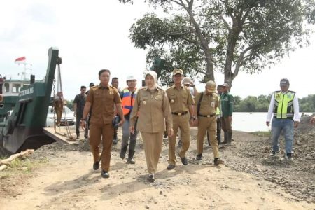 Marabahan, kalselpos.com – Bupati Kabupaten Barito Kuala (Batola), Provinsi Kalimantan Selatan (Kalsel), Hj. Noormiliyani AS bersama Wakil Bupati H. Rahmadian Noor dan Sekretaris Daerah Zulkipli Yadi Noor akhirnya bisa mencapai Kantor Kecamatan Kuripan di Desa Rimbun Tulang menggunakan mobil.