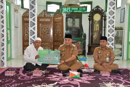 Kandangan, kalselpos.com – Bupati Hulu Sungai Selatan (HSS) Achmad Fikry menyerahkan dana hibah sebesar Rp50 juta untuk menunjang sarana dan prasarana pembangunan Masjid Darul Gufran, Desa Pandulangan Kecamatan Padang Batung, Selasa (8/11).