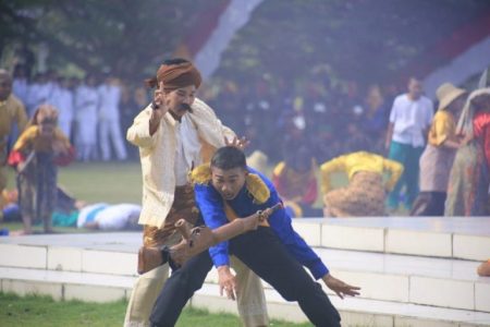 Banjarbaru, kalselpos.com – Pertunjunkan Drama kolosal Perang Banjar yang dipimpin oleh Pangeran Antasari meriahkan Peringatan Hari Pahlawan ke-77 pada Kamis, 10 November 2022 di halaman Setdaprov Kalimantan Selatan (Kalsel).