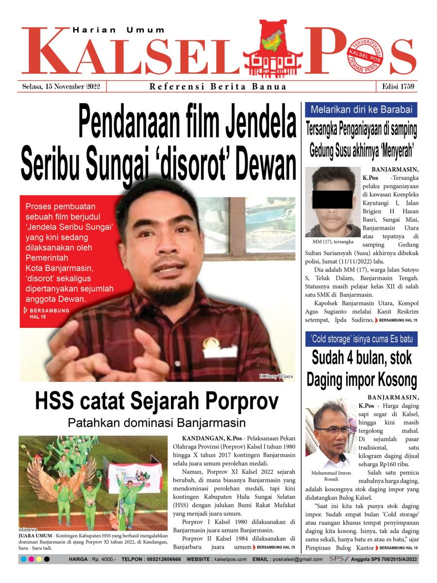 Pendanaan film Jendela Seribu Sungai ‘disorot’ Dewan. Epaper Kalselpos 1759 kalselpos15 November 202225 Desember 2025145 views Bacaan LainnyaBuruh dikeroyok Hingga Tewas, Tersangka Pelaku Serahkan DiriTiga sopir Positif narkoba, Terjaring razia tes Urine BNNK BalanganParkir “Nakal” Pasar Wadai disikat, Lahan yang Tarik Rp10 Ribu disegel Kalsel Pos Berita Terkini, Kabar Terbaru Hari ini Banjarmasin Kalimantan Selatan dan Nasional Pos terkaitBuruh dikeroyok Hingga Tewas, Tersangka Pelaku Serahkan DiriTiga sopir Positif narkoba, Terjaring razia tes Urine BNNK BalanganParkir “Nakal” Pasar Wadai disikat, Lahan yang Tarik Rp10 Ribu disegel