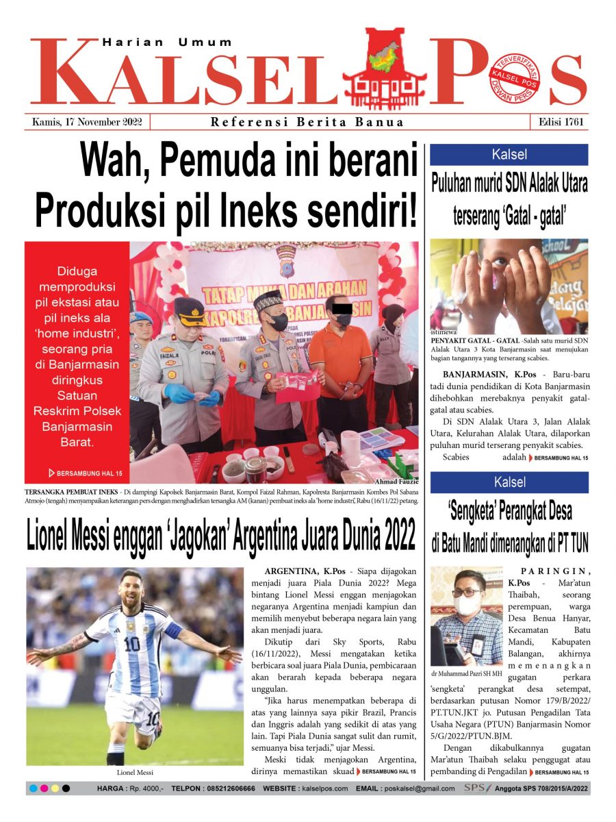 Wah, Pemuda ini berani Produksi pil Ineks sendiri !. Epaper Kalselpos 1761 kalselpos17 November 202225 Desember 2025155 views Bacaan LainnyaTerkait Korupsi Dana Desa Rp657 juta, Eks Kades di Kusan Hilir divonis 3 TahunDireksi baru PAM Bandarmasih terbentuk, Zulbadi dipercaya jadi DirutParkir Pasar Wadai ‘mencekik’, Pengendara Motor ditagih Rp10 Ribu Kalsel Pos Berita Terkini, Kabar Terbaru Hari ini Banjarmasin Kalimantan Selatan dan Nasional Pos terkaitTerkait Korupsi Dana Desa Rp657 juta, Eks Kades di Kusan Hilir divonis 3 TahunDireksi baru PAM Bandarmasih terbentuk, Zulbadi dipercaya jadi DirutParkir Pasar Wadai ‘mencekik’, Pengendara Motor ditagih Rp10 Ribu
