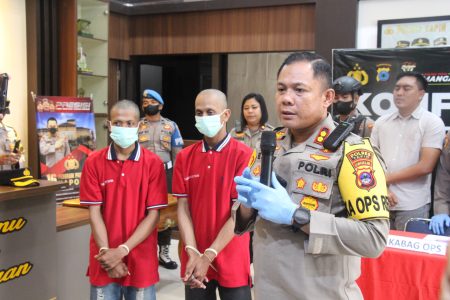 “Tersangka dan korban sebelumnya ‘rebutan’ perempuan di warung malam hingga terjadilah penusukan oleh dua orang tersangka, yakni MJ dan J,” ujar Kapolres Tapin, AKBP Ernesto Saiser, saat konferensi pers. Kamis (24/11/22) siang, di Rantau.