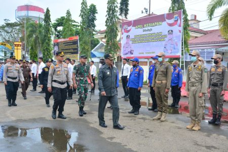 Apel Kesiapsiagaan Bencana Alam diikuti personil TNI/bPolri, Satpol PP, Senkom serta BPBD Kabupaten HSU.