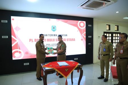 Amuntai,kalselpos.com – Pemerintah Kabupaten Hulu Sungai Utara (HSU) melakukan serah terima jabatan Pj Bupati HSU di Mess Negara Dipa, Senin (5/12).