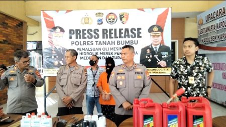 Batulicin, kalselpos.com – Seorang pria berinisial AS (44), terduga pelaku pemalsu oli kemasan, diringkus jajaran Satreskrim Polres Tanah Bumbu (Tanbu).