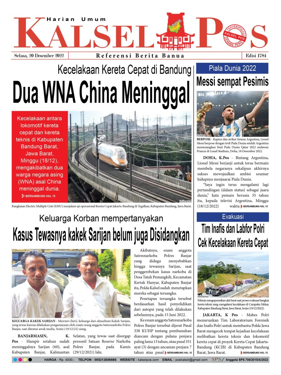 Kecelakaan Kereta Cepat di Bandung. Epaper Kalselpos 1784 kalselpos20 Desember 202224 Maret 2025137 views Bacaan LainnyaTerkait Korupsi Dana Desa Rp657 juta, Eks Kades di Kusan Hilir divonis 3 TahunDireksi baru PAM Bandarmasih terbentuk, Zulbadi dipercaya jadi DirutParkir Pasar Wadai ‘mencekik’, Pengendara Motor ditagih Rp10 Ribu Kalsel Pos Berita Terkini, Kabar Terbaru Hari ini Banjarmasin Kalimantan Selatan dan Nasional Pos terkaitTerkait Korupsi Dana Desa Rp657 juta, Eks Kades di Kusan Hilir divonis 3 TahunDireksi baru PAM Bandarmasih terbentuk, Zulbadi dipercaya jadi DirutParkir Pasar Wadai ‘mencekik’, Pengendara Motor ditagih Rp10 Ribu