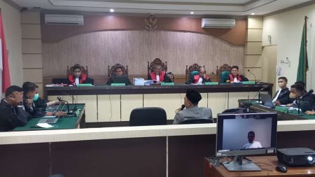 Dipimpin ketua Majelis Hakim, Heru Kuntjoro, terdakwa Mardani H Maming hadir secara virtual, karena masih berstatus tahanan KPK RI, dengan di dampingi tim penasihat hukumnya.