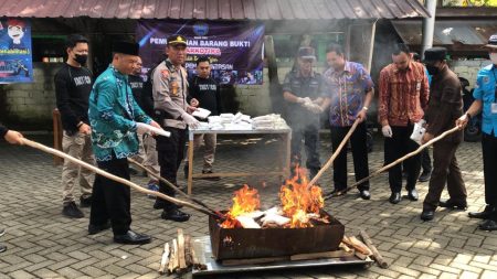 Pemusnahan dilaksanakan di halaman kantor bersama BNNK HSU dan Disdikbud setempat, Kamis (29/12), yang dilakukan oleh Kepala BNNK HSU AKBP Syamsudin, dihadiri Kabag Ops Polres HSU, Kejari HSU, Pengadilan Negeri Amuntai, LOKA POM HSU dan Pemerintah daerah yang dalam hal ini diwakili Kepala Disdikbud.