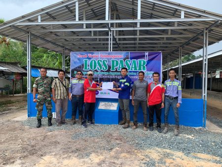 Kepala Desa Bayan Sari, Atum secara simbolis menerima bangunan Los Pasar program dari PT SDJ, TBR dan Buma dari M Ansyari selaku perwakilan PT SDJ.