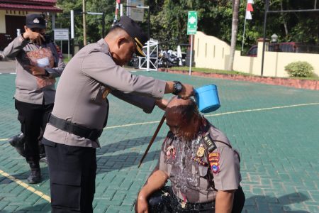 Usai memberikan arahan dan sambutannya Kapolres Balangan dan Pejabat utama Polres Balangan menyalami personel yang naik pangkat dan dilanjutkan tradisi siraman kembang.