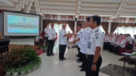 Kandangan, kalselpos.com – Memasuki awal tahun 2023, Bupati Hulu Sungai Selatan (HSS) Achmad Fikry didampingi Sekretaris Daerah (Sekda) Muhammad Noor, menyerahkan Dokumen Pelaksanaan Anggaran (DPA) secara simbolis kepada kepala satuan kerja perangkat daerah (SKPD), Rabu (4/1) disela rapat koordinasi (rakor) di Pendopo Bupati.