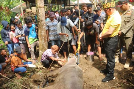 Untuk diketahui bersama bahwa acara puncak pemotongan hewan kerbau ini bertempat di Halaman Balai Adat Desa Bangkalan Dayak Kecamatan Kelumpang Hulu dan dikesempatan itu juga Bupati memberikan bantuan uang sebesar Rp20 juta rupiah yang diterima langsung oleh Ketua Adat Dayak setempat.