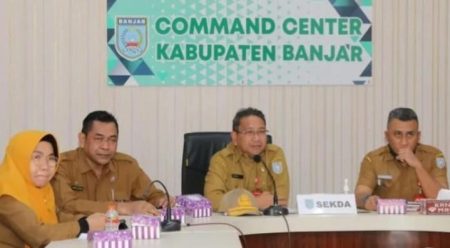 Rakor yang diikuti pemerintah kota dan kabupaten seluruh Indonesia juga dihadiri sejumlah pimpinan SKPD lingkup Pemkab Banjar melalui zoom meeting di Command Center Manis di Martapura, Senin (9/1).