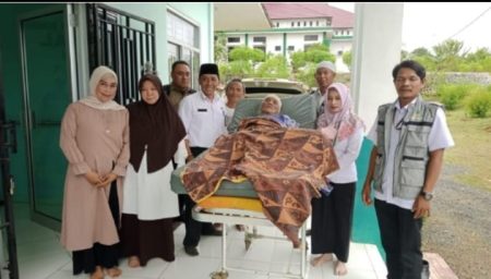 Pemulangan lansia yang bernama Martun ini secara langsung disaksikan Kepala Dinsos Tanbu H. Basuni, setelah mendapat perawatan medis beberapa hari.