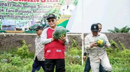 Kandangan, kalselpos.com – Bupati Hulu Sungai Selatan (HSS) Achmad Fikry mengapresiasi kerja keras yang telah dilakukan Kelompok Tani (Poktan) Palawija Makmur, memanfaatkan lahan basah menanam semangka.