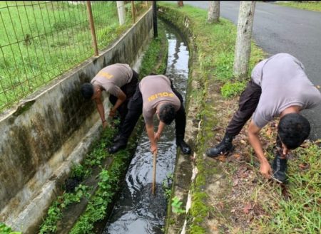 Ini yang dilakukan petugas dari Satuan Samapta Polres Hulu Sungai Utara (HSU) yang bertugas piket, menjalankan bakti sosial. Petugas membersihkan beberapa titik lokasi selokan yang tersendat, akibat sampah dan lainnya.