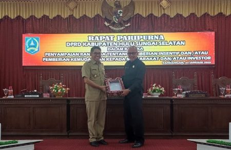 Kandangan, kalselpos.com – Dewan Perwakilan Rakyat Daerah (DPRD) Hulu Sungai Selatan (HSS) sampaikan Rancangan Peraturan Daerah (Ranperda), tentang pemberian insentif dan pemberian kemudahan kepada masyarakat atau investor, dalam rapat paripurna, Selasa (24/1).