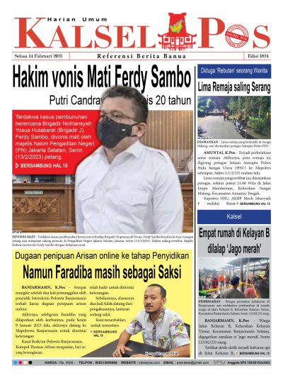 Hakim vonis Mati Ferdy Sambo. Epaper Kalselpos 1824 kalselpos14 Februari 202325 Desember 2025105 views Bacaan LainnyaTerkait Korupsi Dana Desa Rp657 juta, Eks Kades di Kusan Hilir divonis 3 TahunDireksi baru PAM Bandarmasih terbentuk, Zulbadi dipercaya jadi DirutParkir Pasar Wadai ‘mencekik’, Pengendara Motor ditagih Rp10 Ribu Kalsel Pos Berita Terkini, Kabar Terbaru Hari ini Banjarmasin Kalimantan Selatan dan Nasional Pos terkaitTerkait Korupsi Dana Desa Rp657 juta, Eks Kades di Kusan Hilir divonis 3 TahunDireksi baru PAM Bandarmasih terbentuk, Zulbadi dipercaya jadi DirutParkir Pasar Wadai ‘mencekik’, Pengendara Motor ditagih Rp10 Ribu