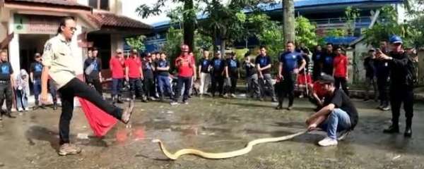 Anang juga menduga, saat itu ular sedang stres. Dengan banyaknya peserta dan ruang lingkup tempat yang cukup sempit.
