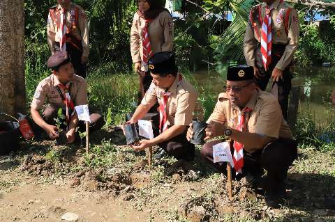 Amuntai, Kalselpos.com – Pembukaan perkemahan Raimuna Cabang (Raicab) Kwartir Cabang (Kwarcab) Gerakan Pramuka Hulu Sungai Utara (HSU) diisi dengan penanaman bibit pohon di Bumi Perkemahan SMPN 3 Amuntai.