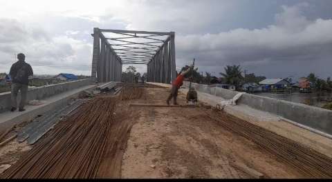 Marabahan, kalselpos.com – Penyelesaian proyek penggantian Jembatan Tanipah di Kecamatan Mandastana, Barito Kuala (Batola), dipastikan molor lagi.