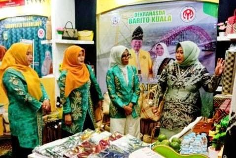 Dengan menghadirkan berbagai kerajinan khas, stand Dekranasda Batola mendapat kebanggaan tersendiri, karena ditinjau langsung oleh ketua Dekranasda Kalimantan Selatan Raudatul Jannah Sahbirin Noor.