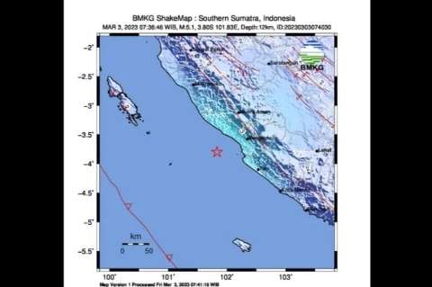 Kota Bengkulu, kalselpos.com – Gempa bumi dengan magnitudo 5,1 yang berpusat di barat daya Kota Bengkulu dirasakan di beberapa bagian wilayah Provinsi Bengkulu pada Jumat (3/3/2023) pagi.