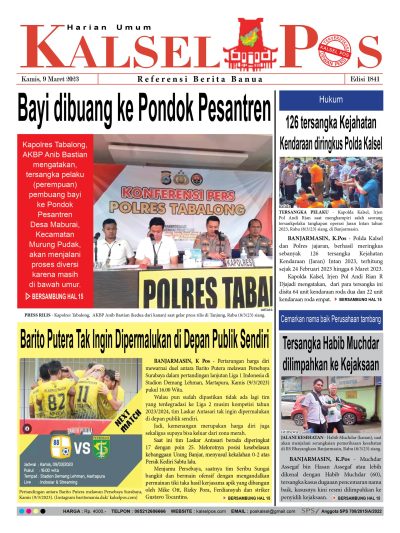 Bayi dibuang ke Pondok Pesantren. Epaper Kalselpos 1841 kalselpos9 Maret 202324 Desember 2025162 views Bacaan LainnyaTerkait Korupsi Dana Desa Rp657 juta, Eks Kades di Kusan Hilir divonis 3 TahunDireksi baru PAM Bandarmasih terbentuk, Zulbadi dipercaya jadi DirutParkir Pasar Wadai ‘mencekik’, Pengendara Motor ditagih Rp10 Ribu Kalsel Pos Berita Terkini, Kabar Terbaru Hari ini Banjarmasin Kalimantan Selatan dan Nasional Pos terkaitTerkait Korupsi Dana Desa Rp657 juta, Eks Kades di Kusan Hilir divonis 3 TahunDireksi baru PAM Bandarmasih terbentuk, Zulbadi dipercaya jadi DirutParkir Pasar Wadai ‘mencekik’, Pengendara Motor ditagih Rp10 Ribu