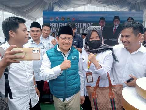 Cak Imin mengatakan dalam sambutannya, ia mengucapkan terimakasih kepada seluruh pihak yang sudah mensukseskan sertifikasi tanah kepada transmigran.