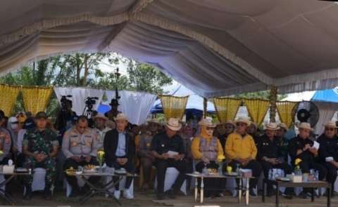 Mentan menghadiri Panen Pedet dan Kick Off Sistem Integrasi Kelapa Sawit Sapi Berbasis Kemitraan Usaha Ternak Inti Plasma (Siska Ku Intip) di Desa Jombang Kecamatan Satui, Tanbu.