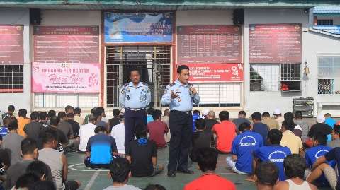 Kalapas Amuntai mengadakan pengarahan tatap muka menjelang bulan suci Ramadhan dengan seluruh WBP Lapas Amuntai di Lapangan Blok Hunian.
