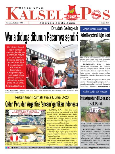 Waria diduga dibunuh Pacarnya sendiri. Epaper Kalselpos 1853 kalselpos28 Maret 202324 Desember 2025111 views Bacaan LainnyaKUHP baru Lebih Untungkan Terdakwa, PN Barabai terapkan di Kasus PenganiayaanSampah Besar kiriman Hulu di Sungai Martapura, Berpotensi ‘hantam’ Jembatan67 ribu warga Terancam tak Terlindungi JKN Kalsel Pos Berita Terkini, Kabar Terbaru Hari ini Banjarmasin Kalimantan Selatan dan Nasional Pos terkaitKUHP baru Lebih Untungkan Terdakwa, PN Barabai terapkan di Kasus PenganiayaanSampah Besar kiriman Hulu di Sungai Martapura, Berpotensi ‘hantam’ Jembatan67 ribu warga Terancam tak Terlindungi JKN