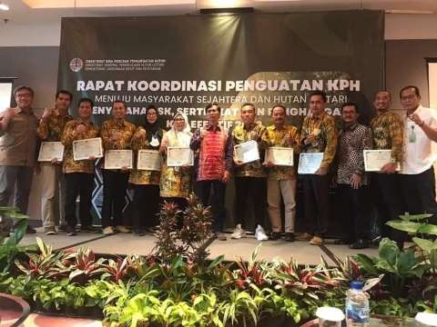 Penghargaan tersebut langsung diserahkan oleh Direktur Jendral Pengelolaan Hutan Lestari, Bapak Dr. Ir Agus Justianto, M.Sc. Di Jakarta,Dirjen Pengelolaan Hutan Lestari juga menyampaikan pentingnya RPHJP dan RPHJPd sebagai acuan pelaksanaan di tingkat tapak. Selain itu KPH yang efektif diharapkan dapat memberikan manfaat untuk masyarakat ekonomi produktif, penurunan jumlah konflik dan terpeliharanya tutupan lahan.