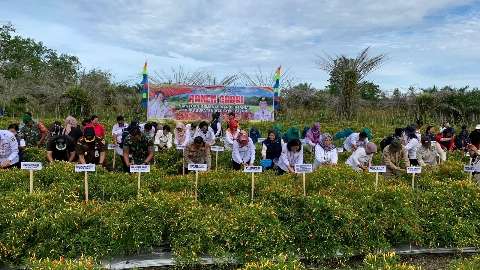 Direktur Perbenihan Hortikultura merangkap Plt Staf Ahli Menteri Bidang Perdagangan dan Hubungan Internasional Kementan, Dr. Inti Pertiwi Nashwari, S.P., M.Si. melakukan panen cabai di Desa Pamangka, Kecamatan Dusun Selatan, Kabupaten Barito Selatan (Barsel), Provinsi Kalteng,