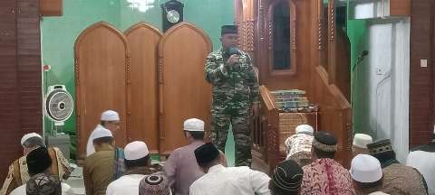 Kali ini Danramil 1022-02/Khi, Lettu Inf Helmi Wahyudi mengisi Kultum jamaah Tarawih di Mesjid terbesar di Kota Pagatan tersebut.