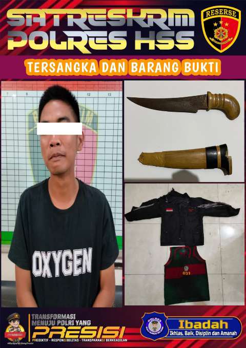 Dari hasil laporan tersebut, Satreskrim Polres HSS melakukan penyelidikan dan berhasil mengamankan tersangka serta barang bukti sebilah pisau penikam.”Pelaku akan dijerat dengan Pasal 340 KUHP Sub Pasal 338 KUHP,” tandasnya.