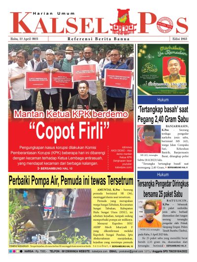 Mantan Ketua KPK berdemo “Copot Firli”. Epaper Kalselpos 1863 kalselpos12 April 2023130 views Bacaan LainnyaTerkait Korupsi Dana Desa Rp657 juta, Eks Kades di Kusan Hilir divonis 3 TahunDireksi baru PAM Bandarmasih terbentuk, Zulbadi dipercaya jadi DirutParkir Pasar Wadai ‘mencekik’, Pengendara Motor ditagih Rp10 Ribu Kalsel Pos Berita Terkini, Kabar Terbaru Hari ini Banjarmasin Kalimantan Selatan dan Nasional Pos terkaitTerkait Korupsi Dana Desa Rp657 juta, Eks Kades di Kusan Hilir divonis 3 TahunDireksi baru PAM Bandarmasih terbentuk, Zulbadi dipercaya jadi DirutParkir Pasar Wadai ‘mencekik’, Pengendara Motor ditagih Rp10 Ribu