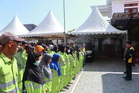 Sebanyak 99 sembako yang dibagikan terdiri dari 89 sembako untuk petugas kebersihan dan 10 sembako untuk petugas TPST (Tempat Pengelolaan Sampah Terpadu).