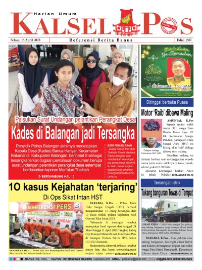 Kades di Balangan jadi Tersangka. Epaper Kalselpos 1867 kalselpos18 April 2023161 views Bacaan LainnyaTerkait Korupsi Dana Desa Rp657 juta, Eks Kades di Kusan Hilir divonis 3 TahunDireksi baru PAM Bandarmasih terbentuk, Zulbadi dipercaya jadi DirutParkir Pasar Wadai ‘mencekik’, Pengendara Motor ditagih Rp10 Ribu Kalsel Pos Berita Terkini, Kabar Terbaru Hari ini Banjarmasin Kalimantan Selatan dan Nasional Pos terkaitTerkait Korupsi Dana Desa Rp657 juta, Eks Kades di Kusan Hilir divonis 3 TahunDireksi baru PAM Bandarmasih terbentuk, Zulbadi dipercaya jadi DirutParkir Pasar Wadai ‘mencekik’, Pengendara Motor ditagih Rp10 Ribu