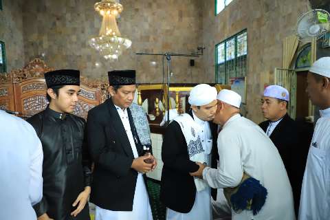Pelaksanaan salat Idul Fitri 1444 H berjalan dengan lancar khidmat, dan jamaah saling berjabatan tangan sambil mengucapkan mohon maaf lahir dan batin.