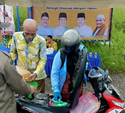 Marabahan, kalselpos.com– Demi sukseskan Haul Syech Muhammad Arsyad Al Banjari atau Datu Kalampayan ke-217, Paman Birin dan Penjabat (Pj) Bupati Barito Kuala (Batola) Mujiyat bagikan 1000 liter BBM bagi para pengendara yang menuju Haul, Kamis (27/4/2023).