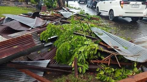 Tiba-tiba material atap rumah berupa kayu dan seng yang terbawa angin menimpanya. Sofyan langsung tersungkur dan tdak sadarkan diri.