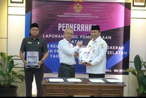 LHP yang diserahkan oleh Kepala Perwakilan BPK RI Provinsi Kalimantan Selatan (Kalsel), Rahmadi ke 8 kali ini kepada Pemkab Batola berlangsung di Kantor Perwakilan BPK Kalsel di Banjarbaru, Rabu (10/5/2023).