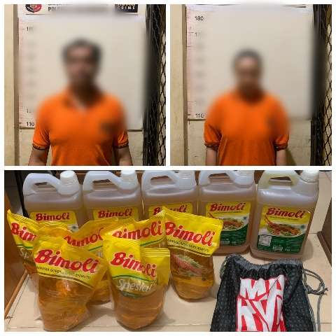 Dari tangan kedua pelaku, polisi berhasil menyita barang bukti berupa lima jerigen minyak goreng merk Bimoli ukuran isi 5 liter, enam bungkus Bimoli spesial refill isi 2 liter, bersama satu unit sepeda motor Mio Hitam Nopol DA 6742 CO dan sebuah tas warna hitam.