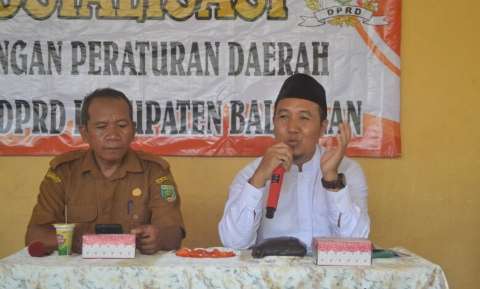 Paringin,kalselpos.com– Anggota DPRD Balangan Hafis Ansyari sosialisasikan rancangan peraturan daerah (Ranperda) tentang perlindungan perempuan, di Desa Panggung, Kecamatan Paringin Selatan, Selasa (16/5) lalu.