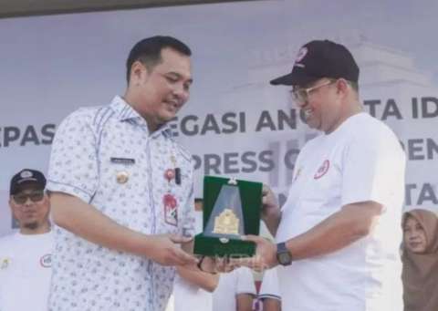 Pelepasan delegasi anggota IDI yang bergerak ke daerah lain di Kalsel di hari yang sama dilakukan wali kota didampingi sejumlah pimpinan SKPD Pemkot di halaman Balaikota Banjarbaru, Jumat (19/5)kemarin.