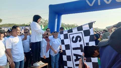 Jalan santai ini dihadiri langsung oleh Ketua TP. PKK Balangan, Hj. Sri Huriati Hadi yang juga melepas para peserta jalan santai.