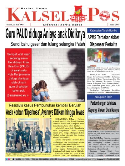 Guru PAUD diduga Aniaya anak Didiknya. Epaper Kalselpos 1893 kalselpos30 Mei 2023230 views Bacaan LainnyaTerkait Korupsi Dana Desa Rp657 juta, Eks Kades di Kusan Hilir divonis 3 TahunDireksi baru PAM Bandarmasih terbentuk, Zulbadi dipercaya jadi DirutParkir Pasar Wadai ‘mencekik’, Pengendara Motor ditagih Rp10 Ribu Kalsel Pos Berita Terkini, Kabar Terbaru Hari ini Banjarmasin Kalimantan Selatan dan Nasional Pos terkaitTerkait Korupsi Dana Desa Rp657 juta, Eks Kades di Kusan Hilir divonis 3 TahunDireksi baru PAM Bandarmasih terbentuk, Zulbadi dipercaya jadi DirutParkir Pasar Wadai ‘mencekik’, Pengendara Motor ditagih Rp10 Ribu