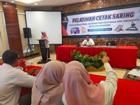 BANJARMASIN, kalselpos.com – Dinas Kebudayaan, Kepemudaan dan Pariwisata (Disbudporapar) melaksanakan Pelatihan Cetak Saring/Cetak Sablon, dilaksanakan di salah satu hotel di berbintang Banjarmasin, Kamis (31/05/23) kemarin.