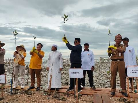 Penanaman pohon bakau sendiri, dipimpin langsung Gubernur Kalsel Sahbirin Noor bersama Sekdaprov Kalsel Roy Rizali Anwar dan Bupati Tanah Laut Sukamta.